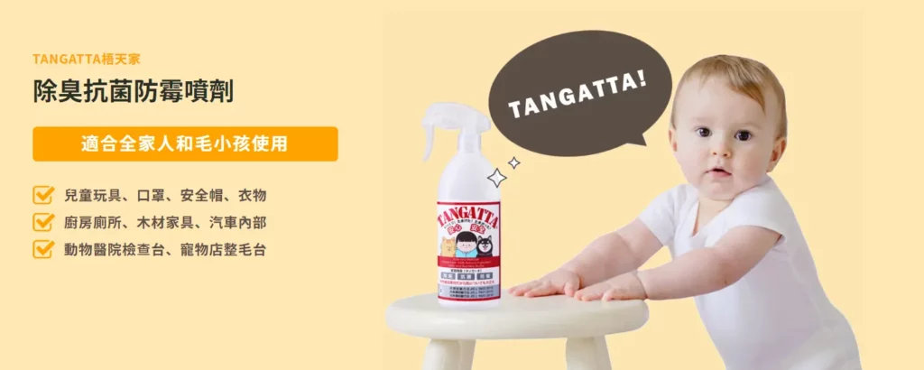 TANGATTA 梧天家除臭抗菌防霉噴劑,以穀物發酵成環狀重合乳酸產品,通過台灣及日本實驗室認證: 48 小時抗菌、去除甲醛效果佳、MRSA 超級細菌抗菌、動物口服無毐、除霉防霉效果,抗菌除臭的唯一選擇。